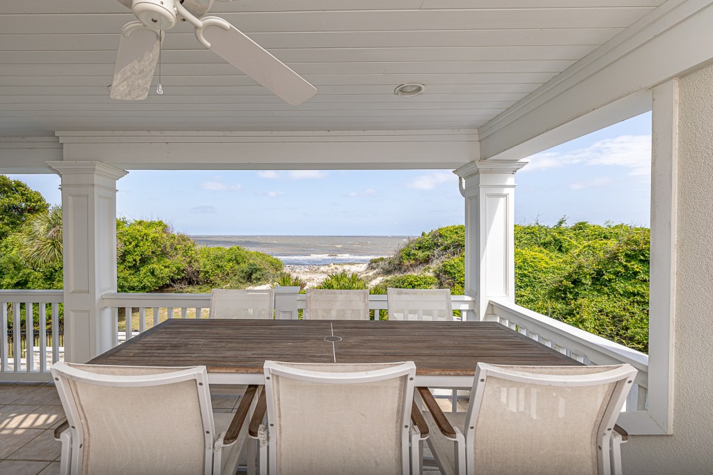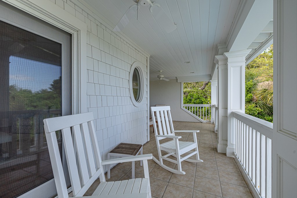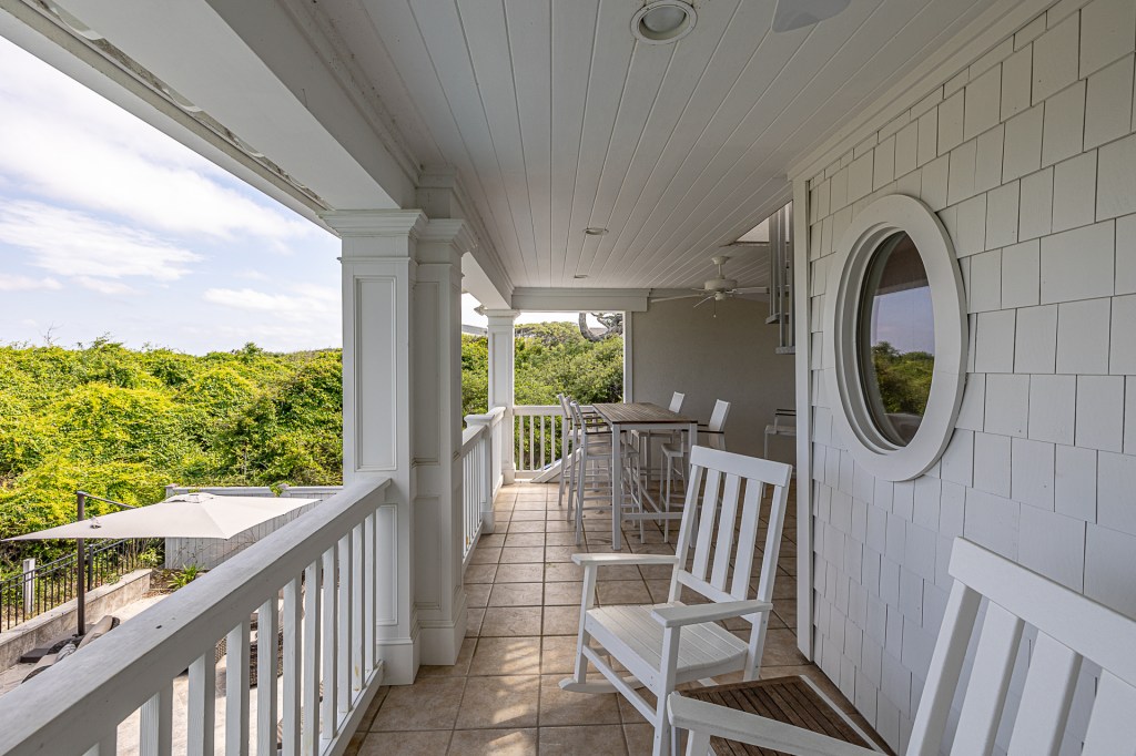 Ascending to the second level, you’ll discover a sprawling balcony that spans the entire back of the house. This elevated vantage point offers panoramic ocean views that will take your breath away. Picture yourself leisurely rocking in one of the four rocking chairs, enveloped by the serenity of the waves crashing against the shore.